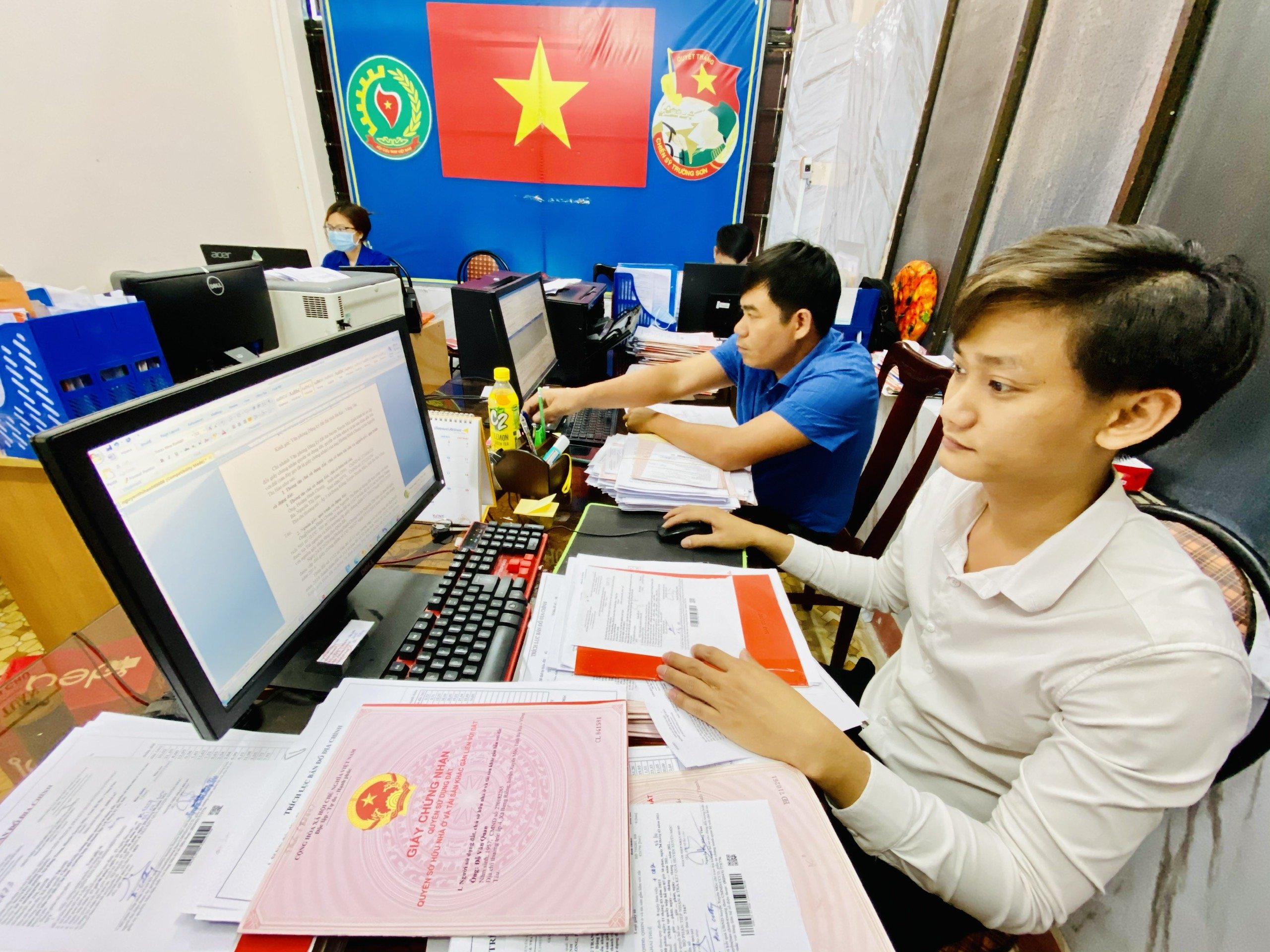 | Việc nâng cao chỉ số TCĐĐ giúp người dân và DN có cơ hội tiếp cận đất đai dễ dàng hơn. Trong ảnh: Nhân viên Văn phòng Đăng ký đất đai huyện Xuyên Mộc xử lý hồ sơ đất đai của người dân. |